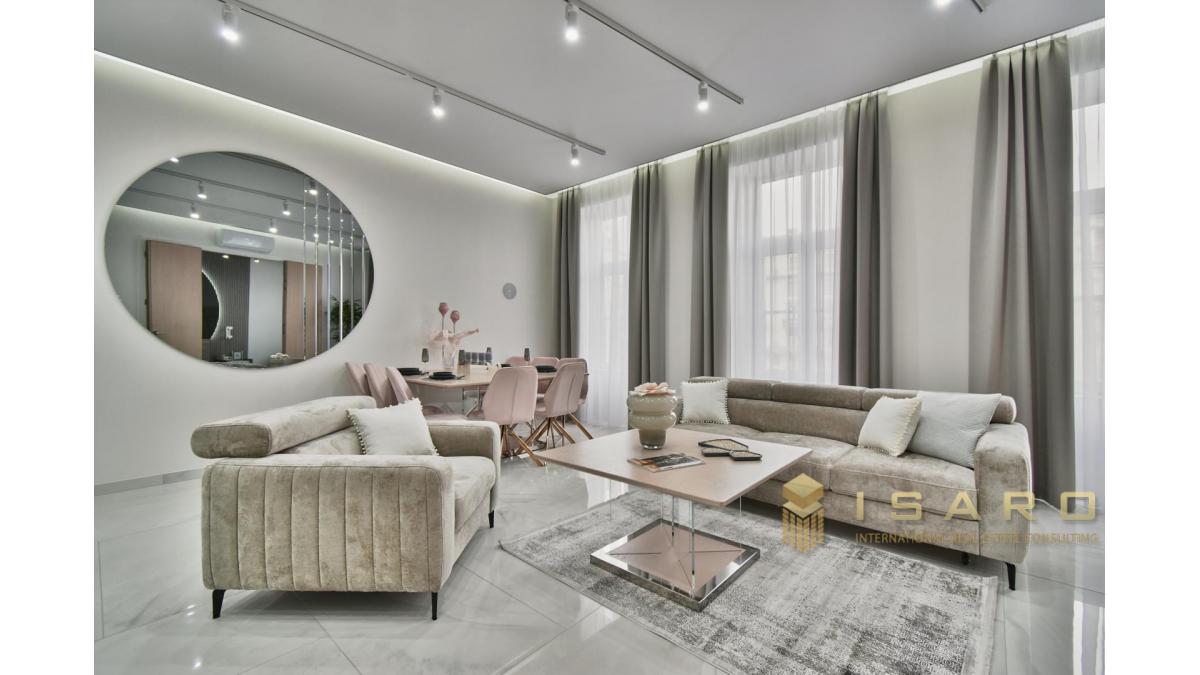 Un bellissimo appartamento con vista panoramica ed con arredamento di lusso è in vendita a Károly körút. L'immobile ha una superficie di 129 m2, composto da 3 camere da letto, un soggiorno, una cucina e due bagni.