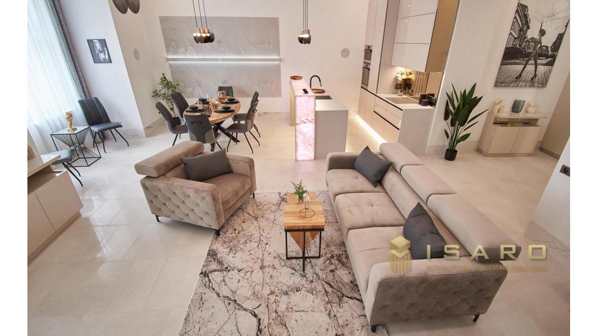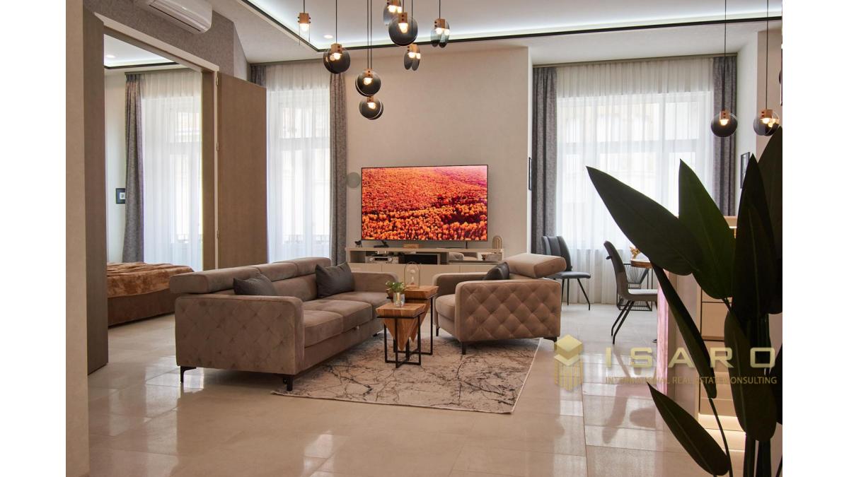 A pochi passi dalla Basilica di Santo Stefano e dalla riva del Danubio, é in vendita un bellissimo appartamento di lusso di 100 m2 in via Október 6, nel V. distretto. L'immobile è composto da un soggiorno con cucina all'americana, 2 camere da letto, 2 bagni e 2 piccoli balconi.