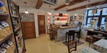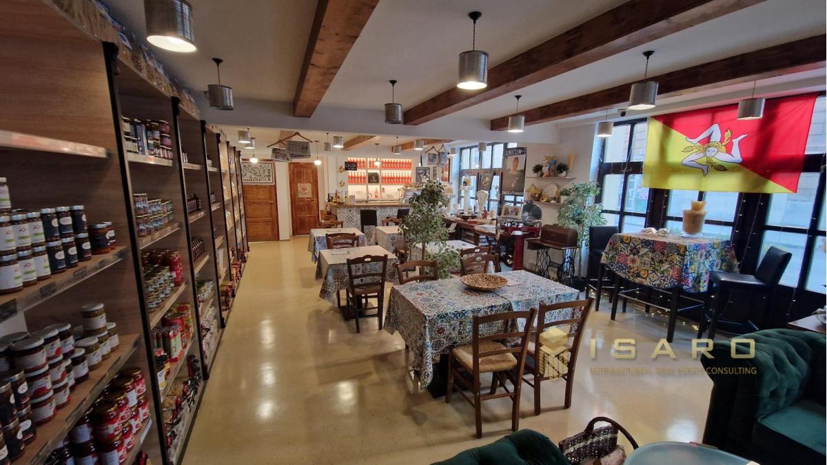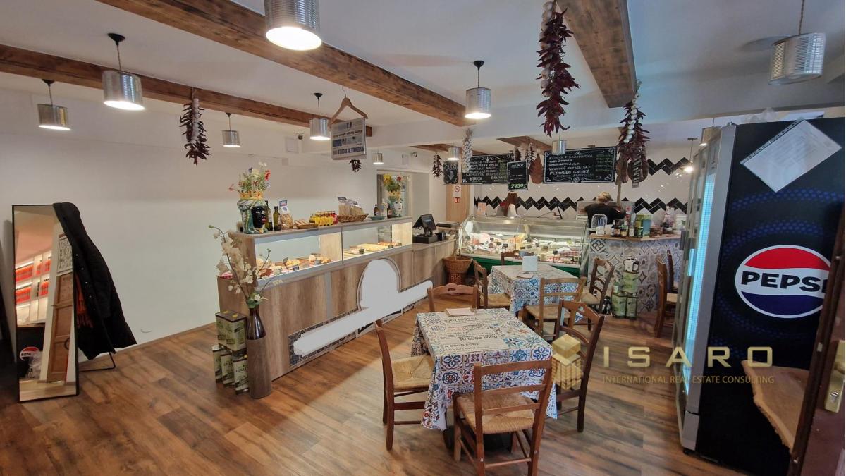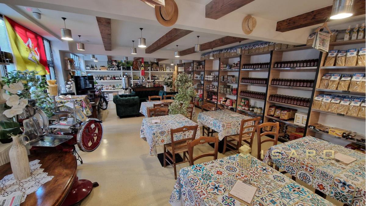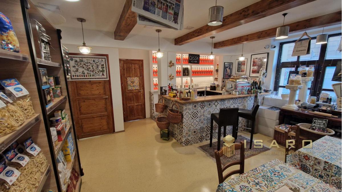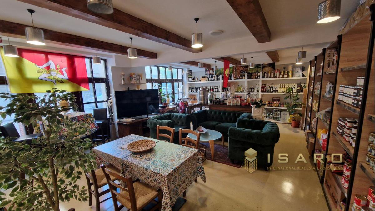 Al pianoterra, la cui superficie complessiva è di circa 180 mq, è stato creato uno splendido ed elegante negozio di prodotti alimentari italiani di alta qualità, con un piccolo angolo dedicato alla ristorazione.